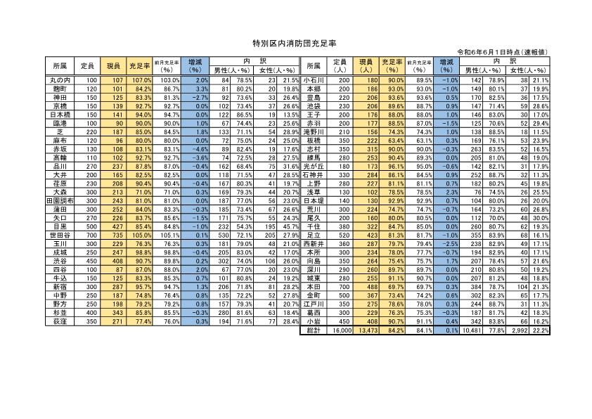 特別区消防団充足率表(速報値)の掲示について(令和6年6月)